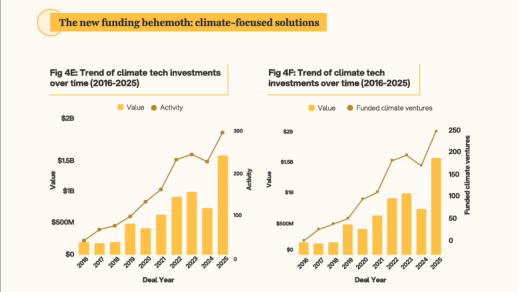 Energy and climate-focused companies pulled in roughly $1.2 billion, overtaking fintech to become the largest sector by total capital raised. Fintech still dominated deal count, but the biggest cheques flowed elsewhere—into solar generation, off-grid power, storage, and mobility systems that sit closer to the physical economy.