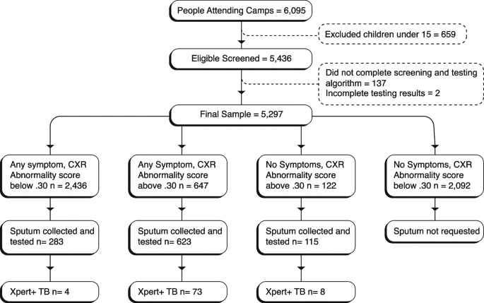Programmes in Nigeria partnered to deploy ultra-portable X-ray units with AI interpretation at community screening camps. People over 15 were screened. If symptoms or the AI score suggested TB, staff collected sputum for confirmatory testing. Studies from Nigeria show that this approach can improve active case-finding and offers a cost-effective screening path for remote populations.