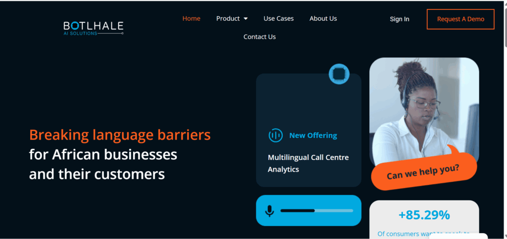 Botlhale AI is a South African startup developing conversational AI tools in African languages. It uses natural-language understanding for local dialects. custom chatbots for customer engagement in isiZulu, Setswana, and Afrikaans, and enables brands to offer inclusive, multilingual support. It is best for African companies serving diverse linguistic audiences.