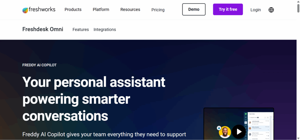 Freddy AI is Freshworks’ virtual assistant designed to automate ticket handling, FAQs, and agent support. It provides predictive insights to help resolve issues faster, suggests relevant responses from your knowledge base, and monitors ticket trends to forecast workload. It’s best suited for SMEs seeking an affordable and efficient customer support automation tool.