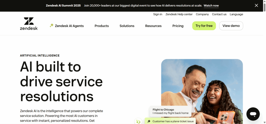 Zendesk AI is an enterprise-grade automation suite integrated into Zendesk’s customer support software. It uses smart triage and intent detection to route tickets efficiently, AI macros to suggest real-time replies for agents, and predictive analytics to gauge customer sentiment. It’s best suited for large customer-facing teams that manage high ticket volumes and need scalable automation.