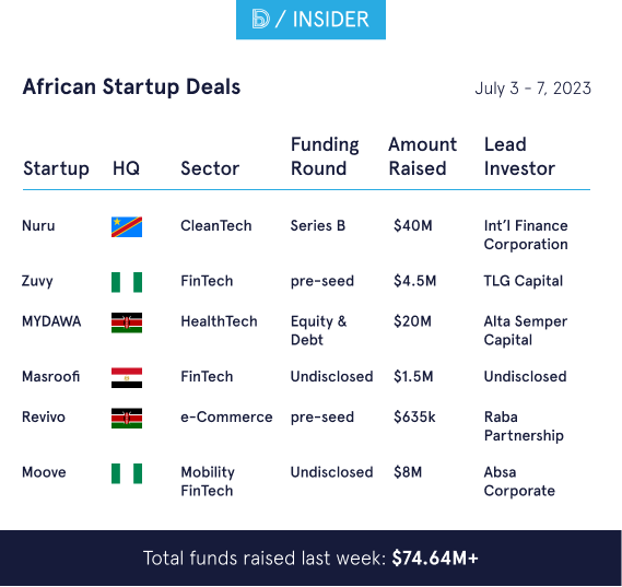 In this letter, we explore: the growth of Nigeria's telecom industry MTN's plan to invest $3.5 billion in Nigeria the first Indian Institute of Technology Campus outside India And other noteworthy information like: the latest African tech startup deals opportunities, interesting reads and more The big three! Nigeria's telecom industry attracted $75.6B investment The news: According to the Nigerian Communications Commission (NCC), Nigeria's telecommunication industry received $75.6 billion in investment in 2021. These investments were from local and foreign investors, representing a 5% year-on-year growth over 2020. The telecom sector's investment profile has recently experienced steady growth, from $68 billion in 2018 to $70.5 billion in 2019 and $72 billion in 2020. The NCC Vice Chairman Umar Garba Danbatta also disclosed that the telecoms sector contributed ₦10.126 trillion as an aggregate quarterly contribution to GDP in 2022. Know more: Per NCC, investments in the sector are computed from two sources: the Central Bank of Nigeria (CBN) and the financial data obtained from service providers. While the CBN collects and calculates an element of the telecoms sector to include FDI, portfolio, and others, the Commission gathers investment figures from telecom licensees described as domestic investment arising from capital expenditure which forms part of the total investment in the industry. Zoom out: Last week, President Bola Tinubu suspended the implementation of a 5% excise duty on telecom services to address business unfriendly fiscal policy measures and multiplicity of taxes. When this tax was introduced last year, several stakeholders including the then minister for digital economy Isa Pantami protested against it. According to Pantami, "the ICT sector is overburdened by so many categories of taxes to the extent that there are 41 categories of taxes at the federal and state level, particularly in the telecom sector". MTN plans to invest $3.5 billion in Nigeria The news: Africa's leading telecom player, MTN, says it will invest over $3.5 billion in Nigeria in the next five years. MTN Group chairman Mcebisi Jonas disclosed this plan last week during a meeting with Nigerian President, Bola Ahmed Tinubu in Abuja. Why it matters: Despite operating in 19 markets, Nigerian contributes the largest chunk of MTN Group's revenue. The telco increased mobile subscribers by 9.4% to 76.7 million in the first quarter of 2023. Per ITWeb, MTN's active data users in Nigeria increased by 14.7% to 41.2 million, mobile money wallets increased by 1.2 million to 3.2 million, and service revenue increased by 20.5% to $742 million. Know more: According to Jonas, the company intends to mobilise other investors to pump over $1.5 trillion into the country's economy. "We are ready to remove bottlenecks to investments in the economy," Tinubu told the MTN delegation. "We have a responsibility to revolutionise the economy so that our youths can share in the prosperity of the nation; otherwise, we are only waiting for the dreams to be charted." India to establish a technology institute in Tanzania The news: The Indian government has announced plans to set up a campus of the Indian Institute of Technology (IIT) Madras in Zanzibar, Tanzania. This will be the first IIT campus outside of India. The memorandum of understanding for setting up of campus of IIT Madras Tanzania was signed between the Ministry of Education, Government of India, IIT Madras and Ministry of Education and Vocational Training Zanzibar- Tanzania, last week in the presence of Hussein Ali Mwinyi, President of Zanzibar and S. Jaishankar, External Affairs Minister of India. Why it matters: "Through this college, Tanzania’s mainland and Zanzibar will become technology hubs. I think this is the government’s ambition as it embraces the industrial revolution," Munishi Assenga, a Tanzanian tech expert told local media. Since last year, Zanzibar has been positioning itself for rising investor interest; in order to attract funding and tech talent and to build its profile as an island tech hub. The Tanzanian government has since launched Silicon Zanzibar, a public-private initiative to drive this ambition. Zoom in: In 2022, pan-African e-commerce startup Wasoko launched the “Wasoko Innovation Hub” in partnership with the Zanzibar government. Located in Fumba Town, Zanzibar, the hub focuses on building tech solutions that will drive Africa's e-commerce industry for years to come, becoming home to over 500 tech talents from Africa and across the globe. The Wasoko Innovation Hub is the first private-public partnership between an African tech startup and the Zanzibar government for “Silicon Zanzibar” State of Funding in Africa Nigerian mobility fintech Moove is back again. The company secured $8 million in financing from Absa Corporate and Investment Banking (CIB) to expand its offering across Ghana. Recall that Moove raised $183.3 million in 2022—after five funding rounds, including a $20 million financing facility from Absa for its South Africa operations. This new investment brings the fintech's total disclosed funding to about $191.3 million, most of the rounds are debt financing. Meanwhile, DRC-based cleantech Nuru took the lead on the funding table last week, raising $40 million Series B to double down its operations in the country. Find below a list of the African startups that secured funding last week. Noteworthy Here are other important stories in the media: Funding decline across Africa: According to BD Funding Tracker, venture capital in African tech dropped by 48% in the first half of 2023. Safaricom wants to invest in more African startups: Kenya’s leading telecom Safaricom says it intends to launch a new VC firm Venture Co. for growth-stage investments and re-launch Spark Venture Fund for early-stage startups. Rwanda’s push to be Africa’s financial hub attracts leading fintech startups: Two African fintechs are expanding their ope