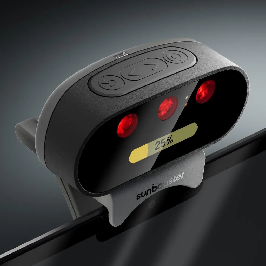 SunLED Light Solutions introduced Sunbooster, a USB-C device that clips onto monitors, tablets, or laptops and emits near-infrared light (850nm) for two to four hours daily. The idea is to supplement reduced sunlight exposure during winter months.