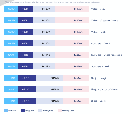 Every Lagos professional faces the same dilemma: save money on transport and waste hours in traffic, or pay premium prices for convenience. New Cowrywise data puts actual numbers to this trade-off, revealing monthly costs—we're talking ₦82,000 versus ₦420,000 monthly. Here's what the numbers really mean for your wallet, and why your transport choice might be the difference between building wealth or staying broke in Lagos. How much each transport option cost The math on Lagos transport is brutal, and most people don't realise how much they're really spending until they sit down and calculate it properly. Public transport from Yaba to Victoria Island costs about ₦82,000 monthly if you're consistent with BRT and danfo. By year five, you're looking at ₦1.4 million annually. It's the cheapest option but comes with the usual Lagos public transport challenges - delays, overcrowding, and the occasional safety concern. Bolt and Uber for the same route will set you back ₦420,000 monthly. That's over ₦5 million yearly, and here's the kicker—these costs aren't static. With ride-hailing prices increasing by about 12% annually, you're looking at ₦8.7 million by year five. Most people using Bolt regularly have no idea they're spending this much. Car ownership seems like the middle ground until you see the real numbers. A Toyota Corolla costs ₦18.9 million over five years even after you sell it. But in the real sense of things, you need to earn at least ₦1.2 million monthly to comfortably afford a car without it destroying your budget. Why Bolt became so expensive Remember when Bolt trips cost ₦8,000 for a decent ride across town? Those days are over. Between early 2024 and October, fares jumped 50%. That same trip now costs ₦12,000 to ₦15,000, and during peak hours with surge pricing, you might even pay double. The increase wasn't gradual either. Users started noticing the jumps around March 2024, and by October, what used to be a ₦10,000 trip was consistently hitting ₦15,000. If you're using Bolt twice daily for work, you're spending ₦30,000 daily just on commuting. Most professionals don't have the time to track this properly and get shocked when they finally add up their monthly transport spending. The ride-hailing companies are still working toward profitability, which means more price increases are coming. The CowryWise data shows a 12% compound annual growth rate, so expect your transport costs to keep climbing if you're heavily dependent on these apps. Is BRT cheaper than Danfo? BRT fares range from ₦300 for short routes to ₦800 for longer distances. Even the most expensive BRT trip costs less than what you'd spend on a single Bolt ride. From Oshodi to CMS, BRT charges ₦400 while a private bus charges up to ₦1,000. Compare that to Bolt's ₦15,000 for a similar distance, and you understand why the savings add up so quickly. Danfo remains the cheapest option at ₦200-500 per trip, but it's also the least predictable for many reasons. Prices could spike depending on several factors like rain for instance. You might wait 30 minutes for a bus, or get stuck in traffic for two hours. The trade-off is real—you save money but lose time and comfort. What most people don't factor in is that BRT has become more reliable over the past year. The government reduced fares by 30% on some routes and expanded coverage. If you live and work along BRT corridors, the service is actually decent now. The car ownership reality check Everyone thinks they can afford a car until they see the actual costs. To buy a Toyota Corolla in Lagos, you need to either save ₦415,000 monthly for a year, or ₦217,000 monthly for two years. Most people earning ₦600,000 monthly think saving ₦217,000 is manageable until they try living on ₦383,000 in Lagos. The loan option looks attractive until you realize you're paying ₦575,000 monthly. Add fuel costs of ₦300,000-500,000 monthly, insurance of ₦200,000-500,000 yearly, and regular maintenance, and you're spending more than most people's entire salary just on transport. Car ownership only makes financial sense if you're earning over ₦1.2 million monthly and can comfortably afford the total cost without it affecting your ability to save or invest. What actually works by income level The Cowrywise analysis breaks down transport affordability across different income brackets, revealing some stark realities about Lagos commuting patterns. For professionals earning ₦200,000-500,000 monthly, the data shows that regular Bolt usage consumes 80-200% of their entire salary just for transport. The analysis found that workers in this bracket who rely heavily on ride-hailing often struggle to build savings, with transport costs crowding out other financial priorities. The ₦500,000-1 million income range presents what the report calls a "false affordability trap." While earning ₦700,000 monthly might seem sufficient for regular Bolt use, the analysis shows that spending ₦400,000 on transport leaves just ₦300,000 for all other expenses in Lagos. Most professionals in this bracket overestimate their transport budget capacity. Only at income levels above ₦1 million monthly does car ownership become mathematically viable according to the data. Even then, the analysis notes that dedicating ₦5 million yearly to transport represents a significant opportunity cost for wealth building through investments or property acquisition. The location strategy nobody talks about The transport cost crisis is reshaping Lagos's property market in ways most people are just starting to understand. Living in Yaba while working on the Island might seem like a budget-friendly choice, but spending ₦420,000 monthly on Bolt to get to work actually costs more than the housing savings. This realisation is driving up property prices in areas with shorter commutes or better BRT access. Everyone's doing the same math; pay more upfront to live closer to work, o