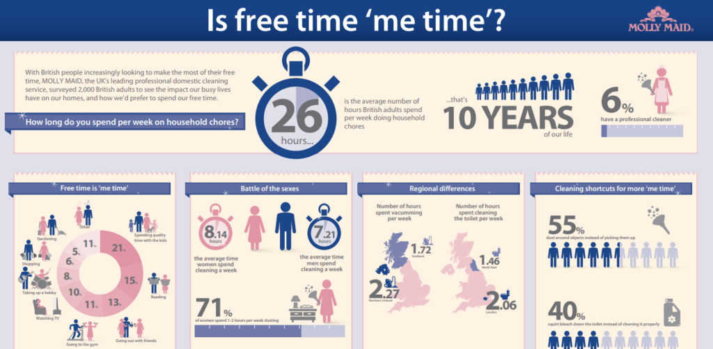 Across the world, people wanton time on house chores. A poll carried out by Moll Maid revealed that Britons spend an average of 10 years doing house chores, that’s about 26 hours/week spent on cleaning and tidying, preparing meals, maintaining the house and car, etc. The UK-based cleaning service concluded that people would rather spend time on themselves—read, go to the gym, relax in front of the TV, go out with friends or spend quality time with family—than on doing chores.