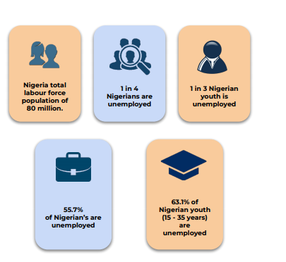 Unemployment is one of the many ills that plague the Nigerian labor market, as the country only captures 49% of its human capital potential. According to our previous post, Nigeria's labor market is saturated with millions of jobseekers but very few jobs. Recent data from the National Bureau of Statistics suggests that the country’s unemployment rate currently stands at 33.3%. Jobberman’s report dubbed “Digital Sector: Skills Gap Report” indicates that Nigeria’s digital economy holds the potential to create jobs and reduce the rate of unemployment. However, to fully harness the sector's potential, there is a need for the country to invest in digital and soft skills. Here are the takeaways from the report: 5 key trends are shaping the growth of the digital sector The global economy is undergoing rapid digital transformation, and Nigeria is said to be in the best position to reap the benefits of the digital economy. The country’s potential is evident in its size as the biggest digital market and the leading destination for investment in Africa. Experts estimate that Nigeria’s digital sector could add $88 billion and 3 million jobs to the economy by 2027. Five key trends drive the growing potential of Nigeria’s digital sector. They are: Urbanization and increasing youth population: Nigeria is at the edge of an urban revolution with a population of over 200 million and a youth population estimated at over 100 million (between ages 15-35 years) Source: Jobberman Young people are migrating to the urban areas in close proximity with new technologies, improved opportunities, and self-employment. This migration is boosting consumer expenditure. According to a McKinsey report, the spending patterns of consumer goods and services in African cities is 79% higher than the national average. Jobberman suggests that this migration rate will boost local consumption and also increase competitiveness in skilled and unskilled labor. Increasing mobile penetration: Nigeria is the largest mobile market in Africa. At a 61% penetration rate, the country’s internet subscribers stood at 126 million in 2020. Source: Jobberman e-Conomy Africa predicts that increasing Africa’s internet penetration by 10% can increase its GDP per capita by 2.5%. Also, increasing the continent's internet access to 75% can create 44 million jobs. This growth will ride on the rising smartphone penetration, payment services, and e-commerce market. COVID-19:Despite the impacts of the Covid-19 pandemic in 2020, the Nigerian ICT sector made a reasonable contribution to the GDP. Jobberman reveals that ICT's contribution rose from 12.46% in Q2 2015 to 17.83% in Q2 2020. The recent growth trend is associated with an increasing need for businesses to sustain remote work and skeletal operations. Jobberman also reports that the trend will favor sub-sectors like; fintech, e-commerce, and healthtech. On fintech, the trend will drive cashless transactions and e-payment solutions. On e-commerce, it will boost online shopping and enhance telemedicine for healthtech. Fourth Industrial Revolution: Technology advancement across businesses, governance, and social interaction is influencing business operations and the ICT sector in general. Source: Jobberman Developments in artificial intelligence, machine learning, peer to peer platforms and manufacturing technology is helping companies and individuals access new opportunities for productivity. According to the World Economic Forum 46% of work activities in Nigeria will be susceptible to automation. Improved business environment: The Nigerian government has initiated reforms to improve the ease of doing business in the country. These initiatives helped the country move up 15 places from its former position of 146 in the 2020 Ease of Doing business index report. Source: Jobberman The government also set a target to achieve 95% digital literacy in Nigeria by 2030. The policy aims to equip young people with the necessary skills required to get decent jobs while transforming Nigeria into a leading digital economy. Nigeria's labor market is under prepared for the digital disruption Nigeria’s labor market is overwhelmed with high unemployment and underemployment rate. According to the National Bureau of Statistics (NBS), 1 in 4% of Nigerians are unemployed, while 1 out of 3 Nigerian youth (15-35 years) are unemployed. Generally, Nigeria’s unemployment rate is 55.7%, while the youth unemployment rate is 63.1%. Source: Jobberman The low creation of jobs is responsible for the unemployment menace in Nigeria. The number of job seekers does not compliment the number of jobs available. In 2018, only 450,000 new jobs were created, whereas over 5 million people joined Nigeria’s labor force. According to the World Economic Forum, the Fourth Industrial Revolution could lead to 75 million job losses by 2025. But, it could also create 133 million jobs, thus leaving a balance of 58 million jobs. However, certain indicators suggest that Nigeria is underprepared for the Fourth Industrial Revolution's disruption to jobs and skills. Some of these indicators include; Gaps within the education system lead to little or no development of the technical and soft skills that job seekers require to attain employability. The quality of Nigeria’s education is low. 13 million children in Nigeria are out of school. Limited opportunity for interaction between employers and jobseekers. Culture and policies that limit women and the less privileged from participating in decent work. The NBS reveals that 63% of women are most likely to be unemployed or underemployed. The mismatch between the skills needed in the digital sector and the skills that jobseekers possess. Skill gaps are the major cause of unemployment COVID-19 is expanding what it means to be employable, thereby creating a digital talent gap in the process. Jobberman research reveals that the pandemic increased the demand for skills in data analysis, digita