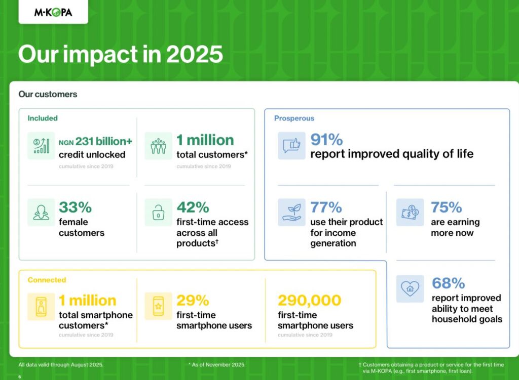 Into that terrain, M-KOPA has built a credit portfolio that now spans more than one million Nigerian customers. Its advantage is not lower pricing. It is the ability to suspend access to the very asset it finances.