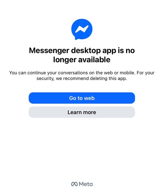 Meta has turned off the Messenger desktop app for both Windows and macOS as of December 15, 2025. Users who open the old app now land on a redirect screen. Accounts tied to Facebook go to Facebook.com for messages. Accounts using Messenger without Facebook are routed to Messenger.com. The retirements follow warnings in‑app. When the deprecation process began, users received alerts indicating they’d have roughly 60 days before the desktop clients stopped working. The apps have already been removed from the Mac App Store and no longer support new installs. Mobile Messenger, on iOS and Android is unaffected. Those versions continue to work as before. Meta retires Messenger desktop app as users get redirected to web. What users need to do The most immediate concern for people using the desktop app is preserving their chat history. Some encrypted conversations stored locally on the desktop client may not carry over automatically. Meta is urging users to enable Secure Storage and set a PIN before the switch. That setup happens inside the Messenger app: Open settings. Go to Privacy & Safety. Select End‑to‑End Encrypted Chats. Turn on Secure Storage. Once enabled, chat history should be available across platforms, including the web version. A full shift to browser and mobile-based messaging The end of the desktop client completes a long trend by Meta away from standalone messaging apps on computers. Messenger first became a separate application from Facebook’s main product in 2014. For more than a decade, users could install Messenger on phones, tablets, and desktops. But on desktop, usage never matched mobile. Technical changes over recent years—including reliance on web‑based frameworks—suggested the standalone experience was losing priority. With the official shutdown now in effect, browsers are the primary way to access messages outside of mobile. Some users online have expressed frustration, especially those who preferred the standalone app for group chats and direct messaging apart from Facebook’s main interface. For others who deactivated Facebook but kept Messenger, the desktop shutdown removes a familiar way to stay connected. What’s left Messenger itself isn’t going away. The messaging service remains active on phones and in web browsers. Only the native desktop programs have been retired. As of now, Meta has not provided a detailed rationale beyond its help‑page notices. For desktop users, the task is straightforward: follow the in‑app alerts, back up encrypted chats if needed, and use the browser version for messaging going forward. For now, Meta’s focus appears to be on mobile and web messaging, not native desktop software. *This is a developing story
