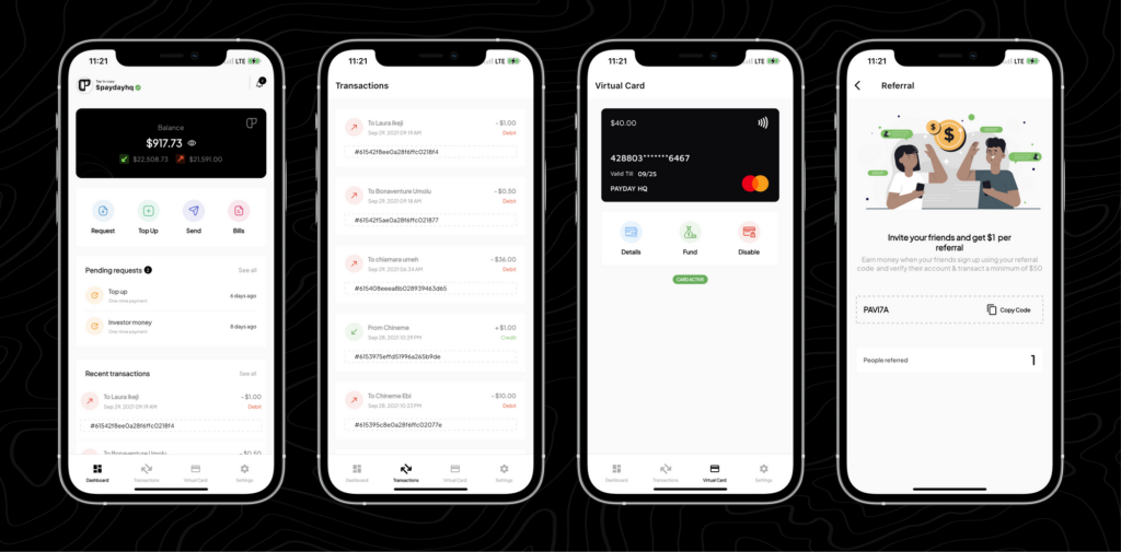 Payday is facilitating sending and receiving money globally from Africa and enabling payments between foreign employers and clients. As well as issuing Virtual Mastercards, and paying tuition and other fees in the United States, Canada, and the United Kingdom.