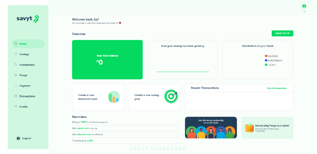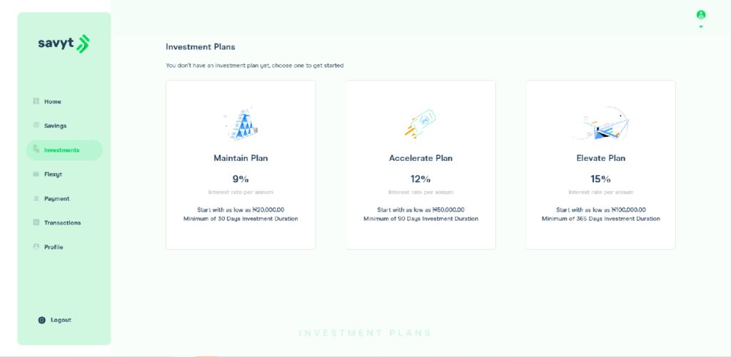 Savyt, a digital savings and investment platform has launched operations with the goal of helping Nigerians earn better returns on their savings and investment. With the inflation rate in Nigeria averaging 12% over a 10-year period and economic growth at a meager 2.2%, the dwindling macro-economic conditions have seriously impacted the wealth of Nigerians. Nigeria has faced two recessions in four years. This has reduced the earning power of the population and put a lot more Nigerians below the poverty line. As a result of these less-than-ideal conditions, it has become difficult for Nigerians to save given the increased loss of jobs and irregularity of income. For the few that are able to save, inflation and risk-adjusted returns are very hard to come by, while investment options are very concentrated in low yielding money market and government securities. Savyt was launched to fill this gap. Savyt is an online platform that connects Nigerians to relatively low-risk and high-yield investment opportunities that helps to protect them from the debilitating effects of inflation and currency devaluation. Its platform employs world-class customer data security and authentication standards while collections and payments are processed by a PCI-DSS certified payments company. Savyt dashboard The platform currently has four products namely: Target Savings, Maintain, Accelerate and Elevate Plans. Subscribers will have the opportunity to earn up to 15% per annum on their investments and are assured of the safety of their funds as all deposits are held by a CBN licensed financial institution. Savyt savings plan Savyt investment plan As Nigeria and most countries around the world exit the pandemic induced global recession, it is imperative that the national savings rate (estimated at 23% by the World Bank as of 2019) is increased to a level that ensures adequate capital is available locally to fund economic growth and lift Nigerians out of poverty. With the ubiquity of mobile phones, the ever-increasing internet penetration, and advancements in payment infrastructure, more Nigerians are adopting new financial innovations that better serve their purposes. Speaking on the launch of Savyt, Muyiwa Babarinde the company’s Head of Growth & Marketing noted that “Nigeria’s fintech ecosystem has witnessed a lot of innovation in the past few years, however, there is still a lot of room for growth. At Savyt, we intend to contribute to the economic growth of Nigeria by providing a range of savings and investment products that help Nigerians retain and grow wealth. Our goal is to help more Nigerians imbibe a good savings & investment culture, the ripple effect of this will be an increase in the country’s economic growth.’’ Nigeria’s Central Bank has introduced several initiatives to improve inclusion since the launch of its 2012 Financial Inclusion Framework including: Agency Banking, Tiered Know-Your-Customer requirements, Financial literacy and Mobile Money. The launch of Savyt at this time in the evolution of Nigeria’s Fintech industry is intended to ride on the back of a supportive regulatory environment to drive innovation in savings, and ultimately improve Nigeria’s savings culture. Savyt is currently available via a web app, and you can kickstart a secure and profitable financial journey by setting up an account and creating a savings or investment plan.