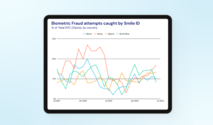 Smile ID (formerly Smile Identity), Africa's leading identity verification and onboarding service provider with 75 million KYC checks done since inception, has released its third report on the State of KYC and Digital ID trends in Africa. The first report was published last year and introduced the State of KYC in the first half of 2022. The second report provided a full-year 2022 view into the state of KYC in Africa, the role and drawbacks of national IDs and emerging fraud trends. This year’s report offers a deep dive into KYC regulations across 13 African countries and other industry insights reflecting the identity company’s expansion and growth story. Speaking on why they publish these reports, the Director of Marketing at Smile ID, Peace Itimi, says, "Our biannual 'State of KYC in Africa' reports testify to our ongoing dedication to facilitating secure and efficient identity verification, supporting compliance and regulatory understanding, and driving the fight against fraud. By offering these insights, we aim to not only lead the conversation, but also to shape the future of digital identification and KYC processes in Africa." One key aspect of this year’s report was the fraud trends across critical African markets—Ghana, Kenya, Nigeria and South Africa. “As more businesses across Africa adopt biometrics for identity verification and fraud prevention, more fraud is being caught,” says Smile ID. ID fraud attempts in Kenya are growing, likewise in Nigeria Kenya is a significant tech hub in Africa; hence, worth discussing. In the first half of 2023, the country’s startups—in 24 deals—raised about $350 million from Venture Capitalists. This makes it the most funded country, in terms of investment value, of the four markets—Ghana, Kenya, Nigeria and South Africa—in view. By contrast, Nigeria—Africa’s most populous nation—only surpassed Kenya regarding the number of deals done, 46, but trails in the worth of those deals, $160 million. An increase in startup investment activity indicates a vibrant ecosystem. But the positivity is tainted by the corresponding increase in fraud attempts. According to Smile ID data, fraud attempts in Kenya jumped by 7% from about 10% in January to 17% in July 2023. Similarly, fraud attempts increased to 13% in Nigeria from 8% in January 2023. However, in Ghana and South Africa, fraud attempts have declined. Between January and June 2023, fraud rates in South Africa dropped from 17% to 8%, while Ghana went from 12% to 10% in that same period. Smile ID says, “Fraud rates move up and down across countries as growth and user behaviour changes in response to new products, services or changes in regulations.” Further research must be done to pinpoint the drivers of these fraudulent attempts increases. That said, such a trend calls for proactive measures from businesses in the region. By leveraging solutions that catch the common fraud attacks—Fake ID documents, Stolen ID documents, Selfie Spoofs, Duplication Fraud, and Synthetic Fraud, African businesses can fortify themselves and minimise losses from fraud. “The biometric KYC solution at Smile ID involves matching a user's submitted selfie with the photo on their Government-issued ID documents. This approach combines the reliability of document verification with the added assurance of biometric comparison, ensuring that your users are indeed who they claim to be, and has proven to reduce fraudulent users by 50%”, says the report. Learn more about the common fraud attacks and trends in Africa and how to mitigate against them in Smile ID’s latest report. Learn more about the State of KYC in Africa by clicking on this image.
