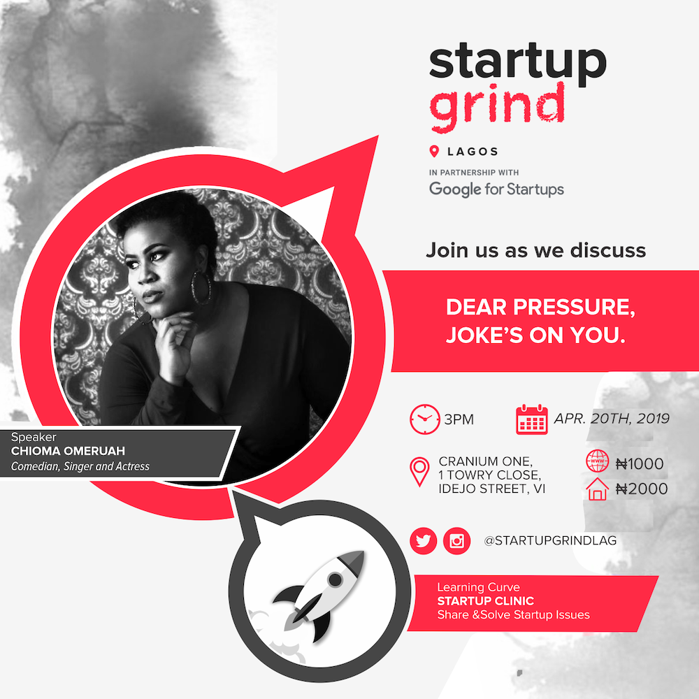 Startup Grind Lagos (SGL) is set to host multi-talented entertainer, Chioma "Chigul" Omeruah at their next meetup on Saturday, April 20. Startup Grind is an organisation that provides safe spaces for entrepreneurs to share pieces of themselves and their work. Monthly, attendees get the opportunity to meet and learn from like-minds and succeeding entrepreneurs from different works of life. Last month, it was the turn of media entrepreneur, Tosin Ajibade. This month, they will be speaking to the multi-talented comedienne, actress and singer, Chigul. The theme of this month is Dear Pressure, Joke's on you. Sounds about right and witty, especially as the invited guest for this month is a comedian . Typically, when people refer to entrepreneurs they have images of tech startup founders running companies that provide consulting and managed services to businesses or founders operating in a consumer space. But rarely, does it come to the mind that entertainers are also entrepreneurs. Therefore, SGL's decision to host a comedian is timely and different. We asked the Lagos Chapter Director, Mr Uwem Uweakpan about their reason for choosing Chigul, the comedian. He said, "She has a compelling story filled with failures, mistakes and near-misses. She always had to deal with the pressure to succeed because she is multi-talented. Entrepreneurs face similar pressures, because we 'cannot' afford to fail", replied Uwem. In a statement sent to benjamindada.com, Blessing Abeng, co-director, Startup Grind Lagos explains that "the entrepreneur's success is often dependent on how well he or she can handle the pressure". In the spirit of doing something different, the Directors of Startup Grind Lagos have announced that one of the attendees will receive a gift. Interested attendees would need to be present at the event's venue no 1, Towry Close, off Idejo Street, Victoria Island, Lagos on. Tickets are on sale online for N1000 to help the SGL team cover logistics cost, however, at the venue the ticket price will double. The event is proudly supported by benjamindada.com, The Afropreneur, Connect Nigeria, and Einsteinette Limited. P.S—One of Chigul's failure is her attempt at a law degree in the US, but learn more at the event on Saturday, April 20. Watch her TED talk here. Cover image culled from Guardian Nigeria