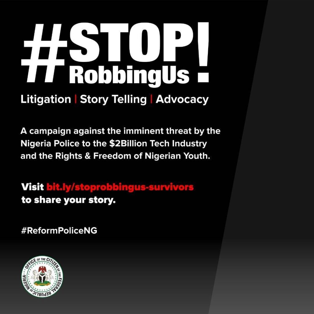 Tech leaders of the #StopRobbingUs campaign are calling for more survivors of the systematic attacks of the Nigerian Police Force (NPF) to come forward as they commence legal proceedings.