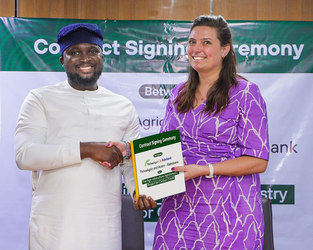 With a market size of over $103 billion, the carbon credits market is a multibillion-dollar market that is growing steadily. This specialised financial market where carbon credits can be bought and sold provides an alternative and additional source of funding for farmers across the world. Despite its popularity, it is very difficult for lower-income African countries, which have limited funds and technical capacity, to participate in the carbon market on fair terms. The prices can be unpredictable and many of the climate benefits Africa provides don’t fit into current carbon credit methodologies. African farmers who could also benefit from these credits, often lack an awareness of how to apply and secure access. To solve this problem, ThriveAgric, a leading Nigerian Agritech startup has partnered with Acorn Rabobank to enable over 30,000 smallholder farmers with carbon credit access. The initiative is expected to facilitate the removal of 1.3 million metric tonnes of carbon emissions and generate $56m in revenue for these farmers. Acorn Rabobank, the climate action arm of the 125-year-old Dutch bank Rabobank, tackles climate change through 27 projects across the world, including countries like Ghana, Kenya, Zambia, Rwanda, and Tanzania. ThriveAgric CEO UKA Eje with a representative of Acorn Rabobank at the partnership launch in Abuja on April 3, 2024 “Every farmer we’d work with has an opportunity to make additional revenue from carbon credits,” Samirah Bello, head of Partnerships at Thrive Agrice told Bendada.com. “For example, a farmer with one hectare of land can make as much as $1,700 in revenue from carbon credits in a year. For farms with newly planted trees, carbon credit revenue typically starts increasing after the third year as the trees mature, capturing more carbon and generating additional credits.” Across nine Nigerian states (Kaduna, Gombe, Adamawa, Taraba, Bauchi, Jigawa, Niger, Nassarawa, and Kano), the project plans to empower smallholder farmers to regenerate their farmlands. This initiative tackles climate change by improving soil health, boosting biodiversity, and enhancing carbon capture. Farmers will benefit from increased crop productivity, reduced post-harvest losses, and additional income from carbon credits and other climate-smart programs. “The carbon market is such a big market that we believe African farmers shouldn’t left behind,” Ayo Arikwe, CTO of Thrive Agric, said. “We’re also building internal capacity to expand the scope of carbon emissions. We’d start with this agriculture project and expand to others.” Africa holds immense potential for carbon credits, yet it currently captures only 2% of its capacity. Agriculture, with practices like agroforestry, offers a significant portion (30%) of this potential. Trees absorb carbon while reducing deforestation, which has led to increased droughts, conflicts, and climate disasters. These factors contribute to pre- and post-harvest losses, reducing food availability and pushing millions into hunger. The agritech startup, which works with over 800,000 smallholder farmers in Nigeria, Ghana, Kenya and Uganda, has also launched a platform, Dorewa, a platform to facilitate seamless carbon credit transactions. Farmers can list their projects on the platform, and if verified and accepted, they too can start earning additional revenue. ThriveAgric also gets a commission on every successful carbon credit transaction on the platform. “The idea behind Dorewa is to help other farmers across Africa get started on the journey of offsetting carbon credits,” Arikwe said. "We believe this is just the start of something new in Africa."