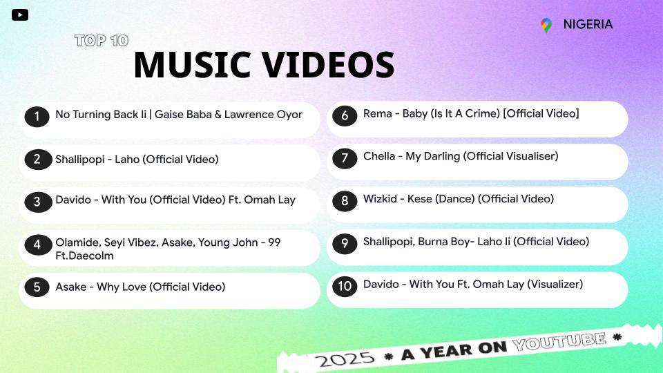 Following Google’s Year in Search 2025, YouTube’s Nigeria Recap 2025 landed this week—and for once, the numbers mostly live up to the hype, with a grain of context. Metrics like annual earnings, TV screen watch time, and international views show real growth: channels earning over ₦1 million rose 35%, TV watch time climbed 40%, and 70% of views now come from outside Nigeria.