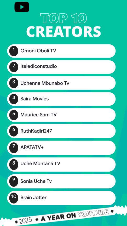 Watch time on YouTube via televisions rose 40% in 2025, marking a quiet shift from solo scrolling to shared viewing, and from short bursts of attention to longer, deliberate watching. Nigerians are gathering around smart TVs again, not for cable dramas but for Omoni Oboli’s latest upload. That shift has blurred the boundaries between platforms; what matters now isn’t where the story lives but how quickly it finds its audience. And right now, YouTube delivers faster, fresher, and on demand.